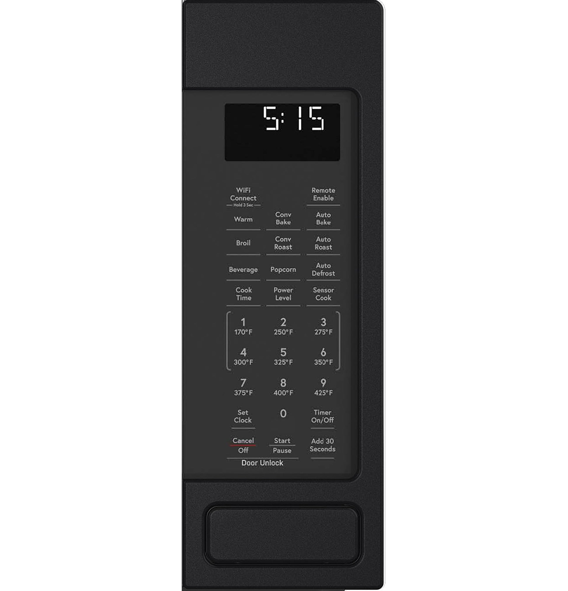 Display Type LED Cooking System Turntable Interior Lighting Incandescent Electronic Digital Display with Clock Yes (LED) Microwave Sensor Cooking Controls Fish, Fresh Vegetables, Frozen Vegetables, Ground Meat, Potato Control Features Add 30 Seconds, Auto & Time Defrost, Auto Bake, Auto Roast, Broil, Child Lock-Out, Clock, Combination Auto Cook, Control Lock, Convection Bake, Convection Roast, Cook Time, Display On/Off, Mute, Scan-to-Cook, Timer, Voice Assistant, Warm Rack Type 2 Removable Oven Racks - Pedestal Display Screen Size (Diagonal Length) 2.45 Timer (On/Off) Yes Product Type Countertop Microwave Express Cook Instant-On 1-6 Convection Cooking Controls Bake, Roast Combination Cooking Controls Combination Cook Microwave Watts (IEC-705) 1000 Power Levels 10 Microwave Oven Interior Stainless Steel Scrolling Display with Help Yes Sound Volume Control On/Off Turntable Glass Recessed Instant On Controls Yes Cooking Technology Microwave/Convection WiFi Connect Built-In Turntable Size 13.5 APPEARANCE