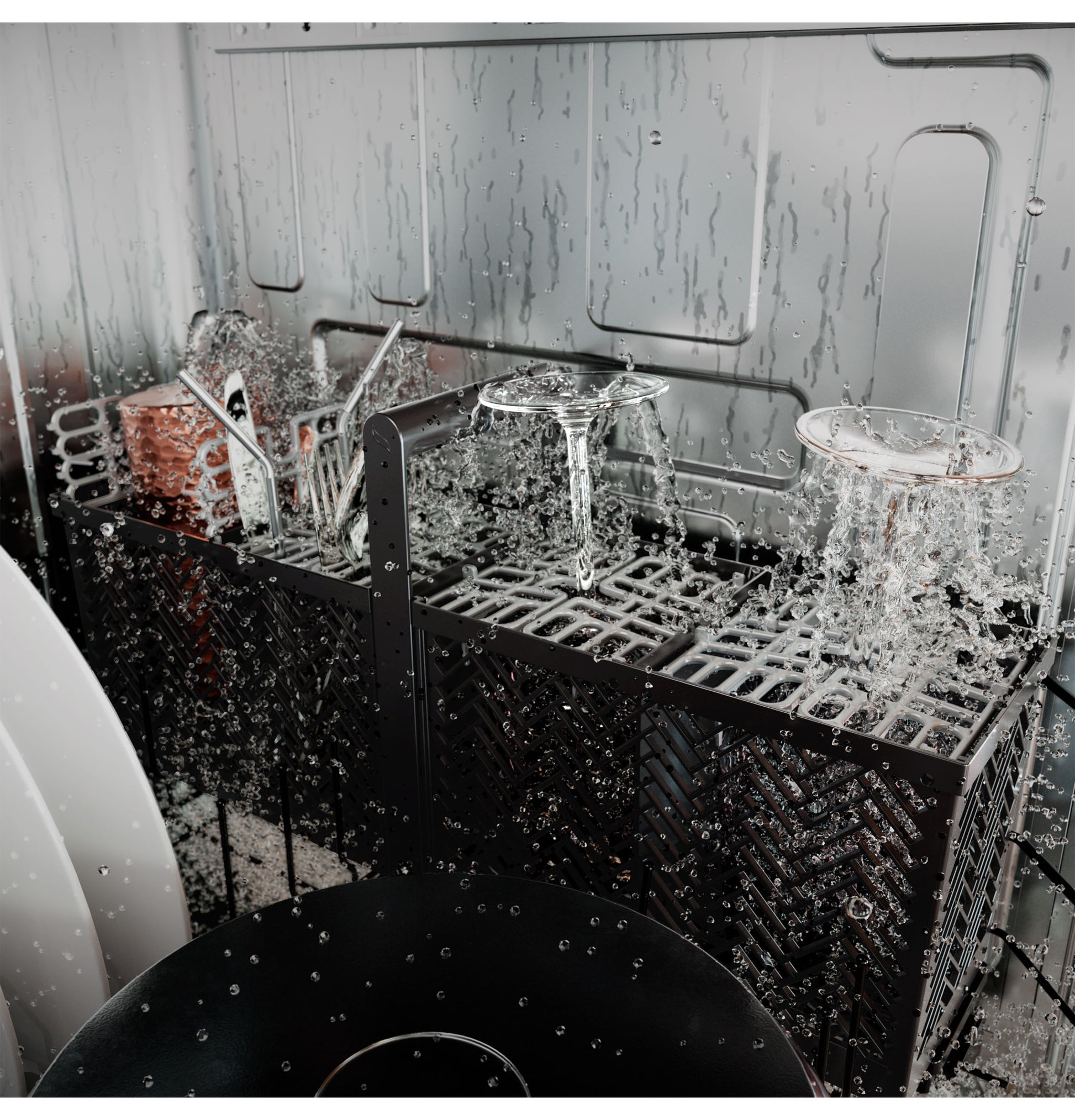 Café™ CustomFit ENERGY STAR Stainless Interior Smart Dishwasher with Ultra Wash Top Rack and Dual Convection Ultra Dry, LED Lights, 39 dBA in Platinum Glass