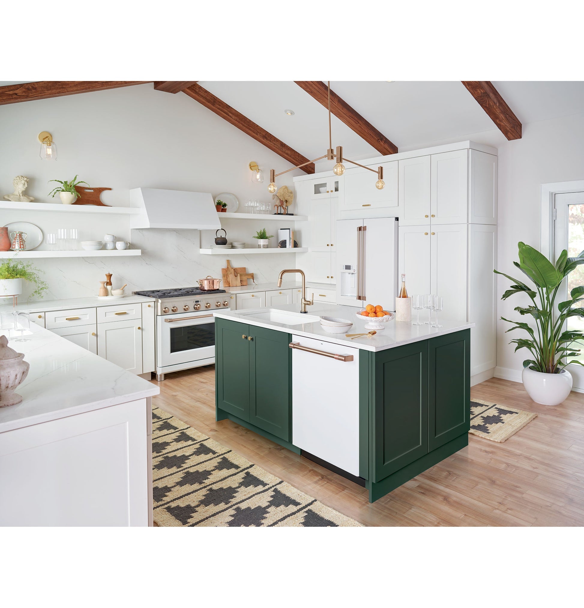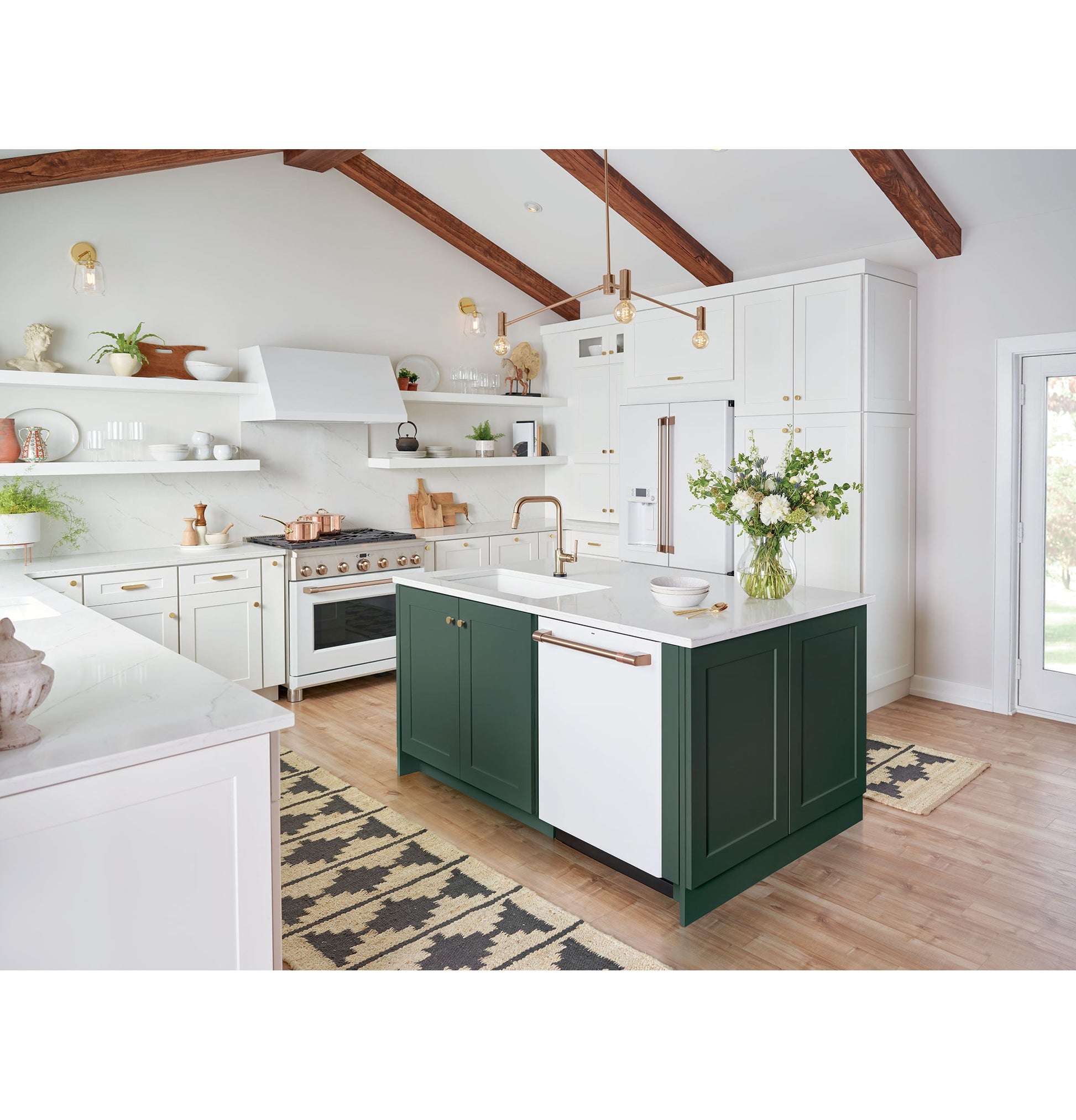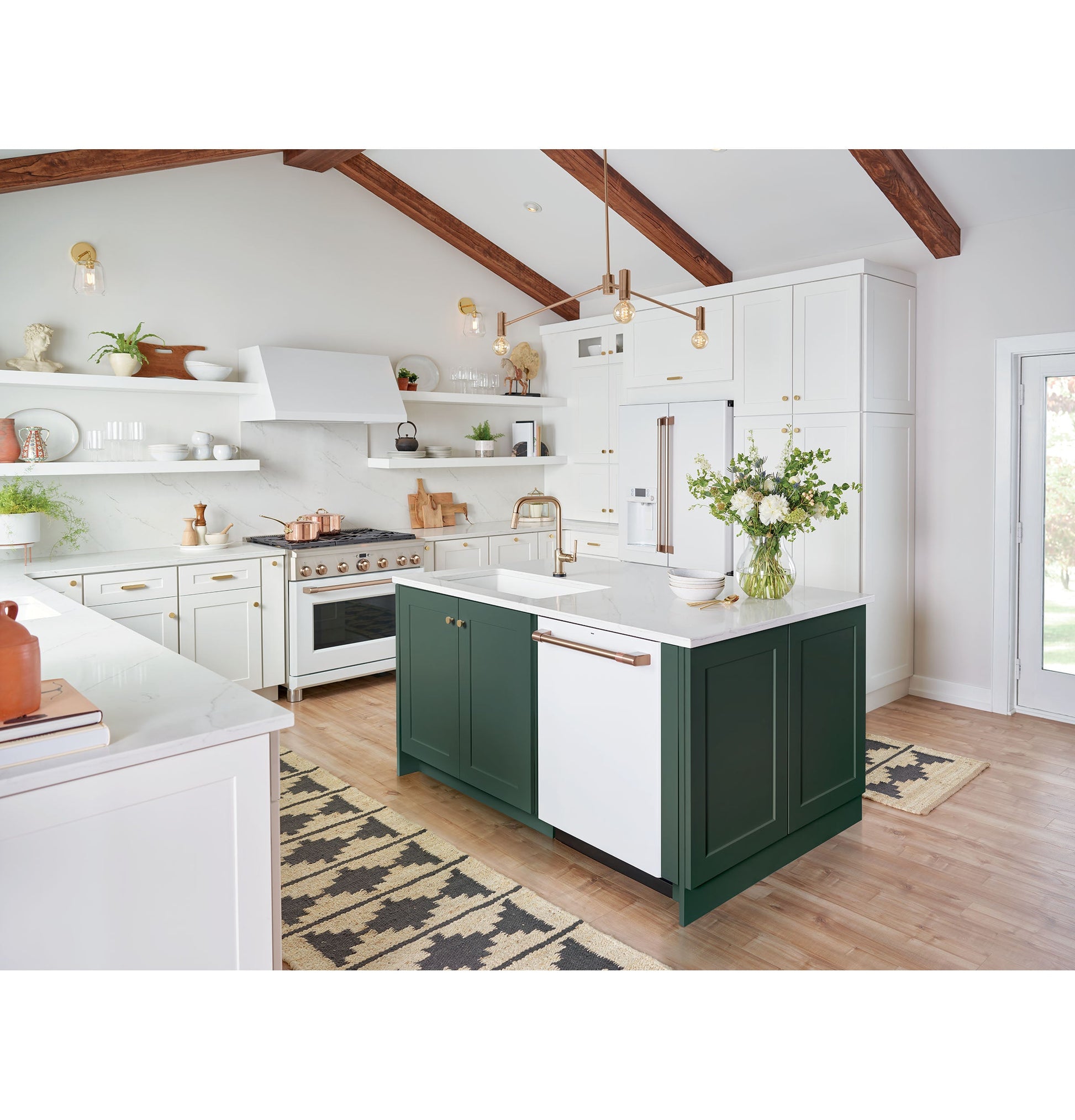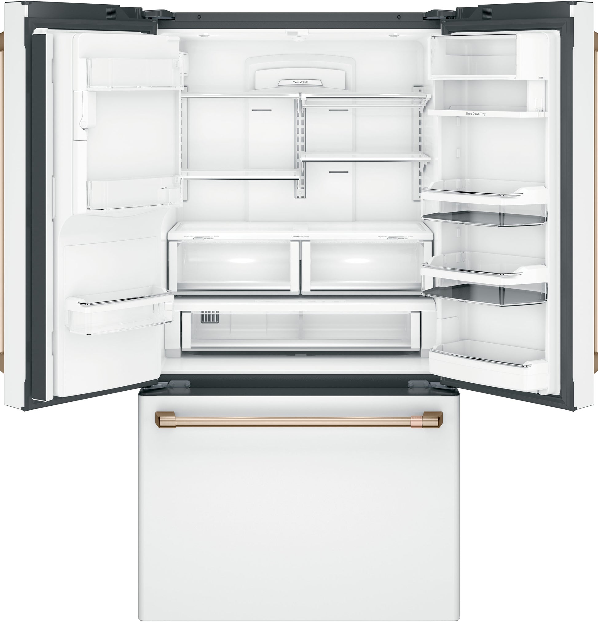 Exterior Design Flat Doors Door Stops Yes Handle Color Brushed Bronze Counter-Depth Design Yes Door Swing Hinges on Left & Right Color Appearance Matte White Handle Café⢠Hidden Door Hinge(s) Yes WARRANTY