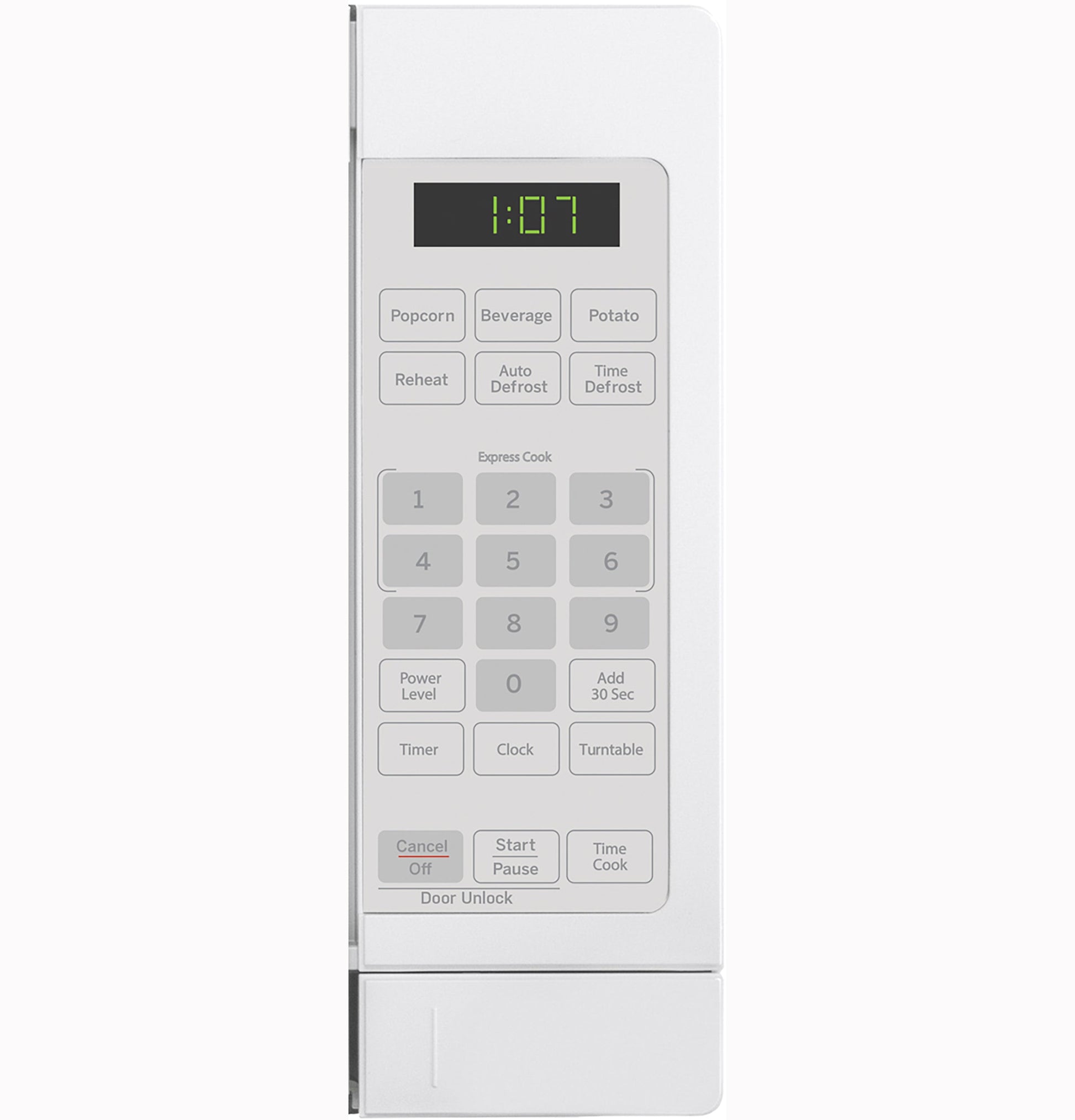 Display Type LED Power Cord Length 39" Electronic Digital Display with Clock Yes Control Features Add 30 Seconds, Auto & Time Defrost, Cancel/Off, Child Lock-Out, Clock - 12 Hr., Cooking Complete Reminder, Express Cook - Instant-On 1-6 Minutes, Sound On/Off, Start/Pause, Time Cook I & II, Timer On/Off Display Screen Size (Diagonal Length) 1.67 Product Type Countertop Microwave Microwave Watts (IEC-705) 700 Power Levels 10 Control Type Electronic Touch, LED Turntable Glass Microwave Convenience Cooking Controls Beverage, Popcorn, Potato, Reheat Cooking Technology Microwave Turntable Size 10.75 APPEARANCE