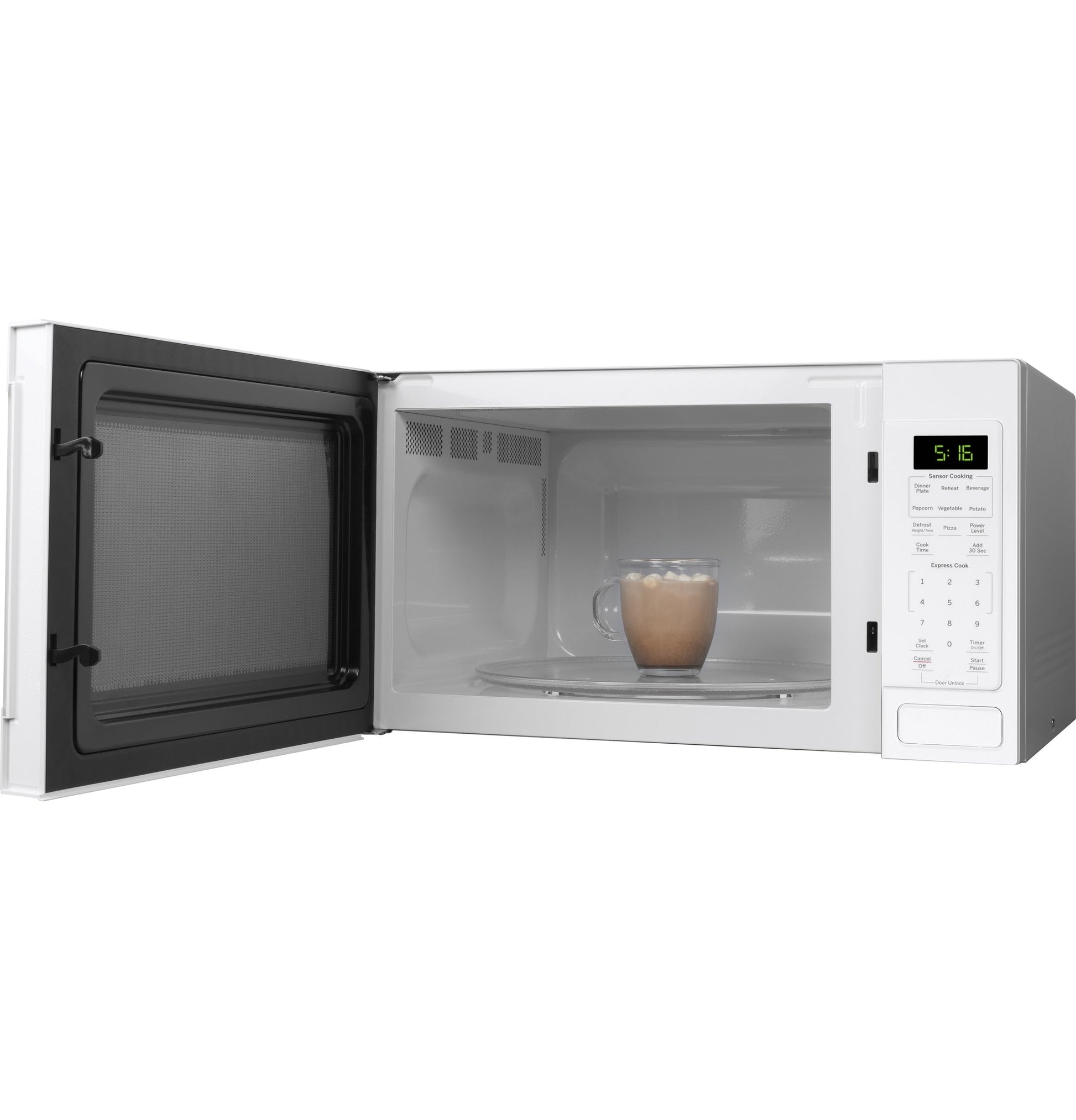 Display Type LED Cooking System Turntable Interior Lighting Incandescent Electronic Digital Display with Clock Yes Microwave Sensor Cooking Controls Beverage (Instant-On), Dinner Plate, Popcorn (Instant-On), Potato (Instant-On), Reheat (Instant-On), Vegetables (Instant-On) Control Features Add 30 Seconds (Instant-On), Cancel/Off, Child Lock-Out, Clear/Off, Clock - 12 Hr., Control Lock, Cooking Complete Reminder, Express Cook - Instant-On 1-6 Minutes, Start/Pause, Time Cook I & II, Timer On/Off, Weight & Time Defrost Display Screen Size (Diagonal Length) 2.45 Product Type Countertop Microwave Microwave Watts (IEC-705) 1150 Power Levels 10 Control Type Electronic Touch Turntable Glass Instant On Controls 1-6 Minutes Microwave Convenience Cooking Controls Defrost: Weight/Time, Pizza Cooking Technology Microwave Turntable Size 13.625 APPEARANCE