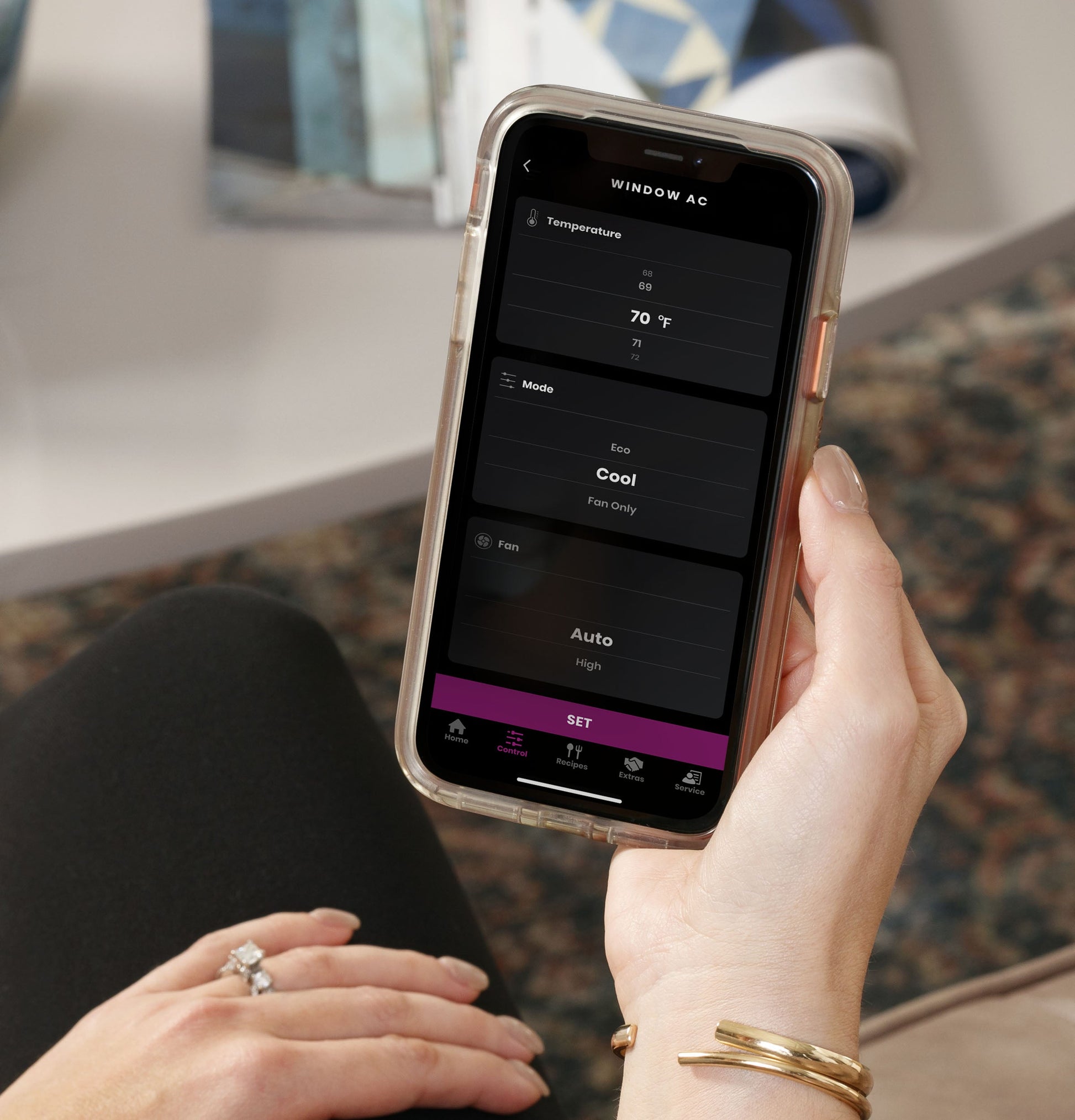Louver Style 4-Way Adjustable Fan Speed Selections 3 Cooling, 3 Fan Only Power Cord Length 72" Minimum Product Type Window Refrigerant Type R32 Filter Type One Touch Lift-Out Chassis Type Fixed Vent/Air Exchange Exhaust Top Air Discharge Airflow Direction 4-Way Adjustable, Top Plug Type Parallel/NEMA 5-15 Mounting Type EZ Mount Delay Timer 24-Hour On/Off Timer Connected Capabilities Amazon Alexa, Google Home, IFTTT, The Google Assistant WiFi Connect Built-In Remote Control Yes Thermostat Type Electronic LCDI / AFCI power cord Yes Airflow (cfm) Roomside (hi/low) 235/200 Area to Cool 350-450 Rotary Compressor Yes Digital Time Temp Display Yes Unit Type Cool Only Room Air Conditioner Features Electronic Control, Energy Saver, On/Off Timer, Remote Control APPEARANCE