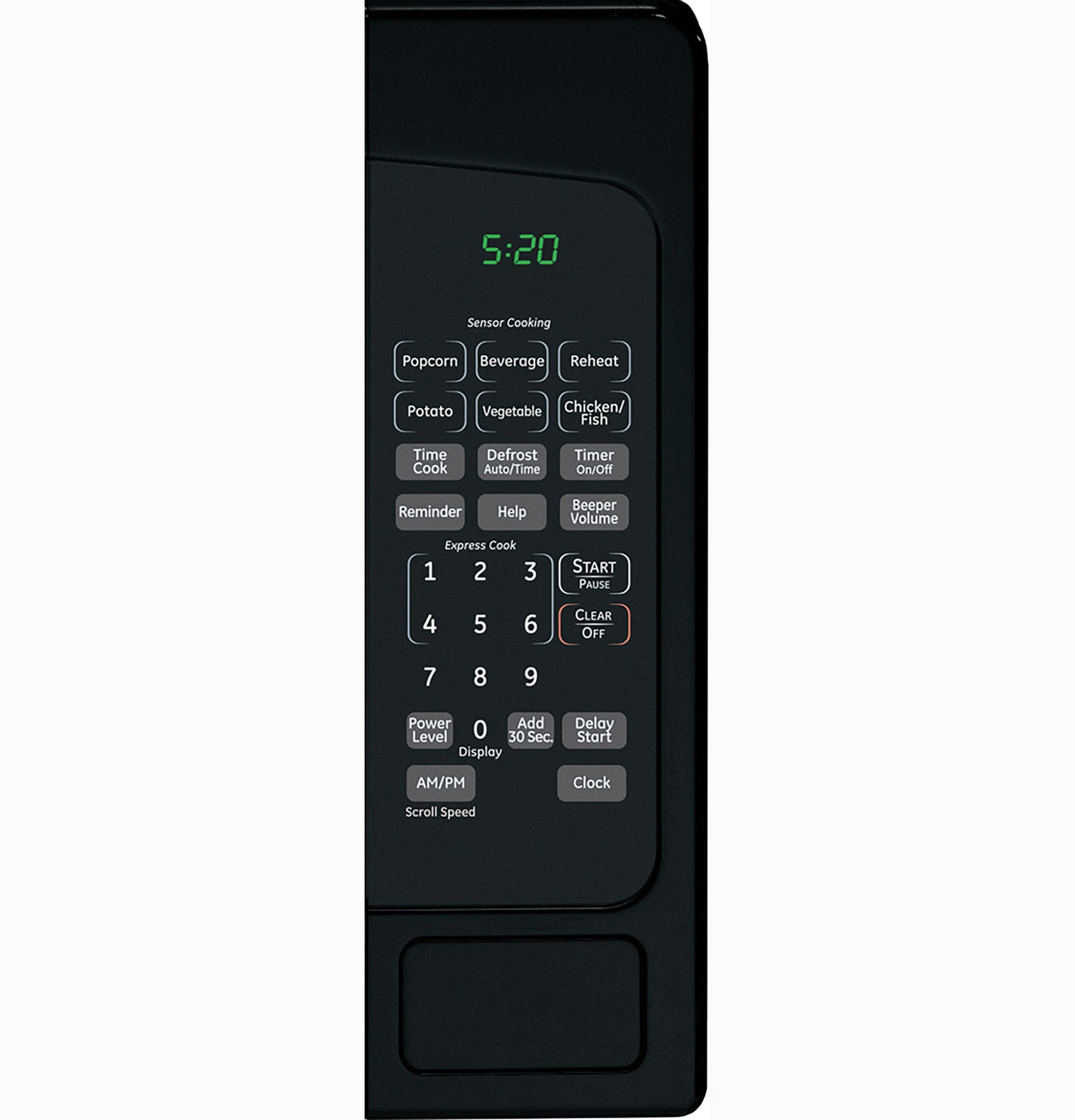 Display Type LED Cooking System Turntable Electronic Digital Display with Clock Scrolling (VFD) Microwave Sensor Cooking Controls Beverage (Instant-On), Chicken/Fish (Instant-On), Popcorn (Instant-On), Potato (Instant-On), Reheat (Instant-On), Vegetables (Instant-On) Control Features Add 30 Seconds (Instant-On), Child Lock, Clear/Off, Clock with AM/PM Pad, Cooking Complete Reminder, Delay Start, Demo Mode, Display On/Off; Sub-Pad with Zero, Help, Reminder (24 Hr.), Start/Pause, Time Cook I & II Display Screen Size (Diagonal Length) 2.01 Product Type Countertop Microwave Microwave Watts (IEC-705) 1200 Power Levels 10 Control Type Electronic, Touch Pad Exhaust Fan Instant-On; 1-6 minutes Turntable Glass Cooking Technology Microwave Turntable Size 16 APPEARANCE