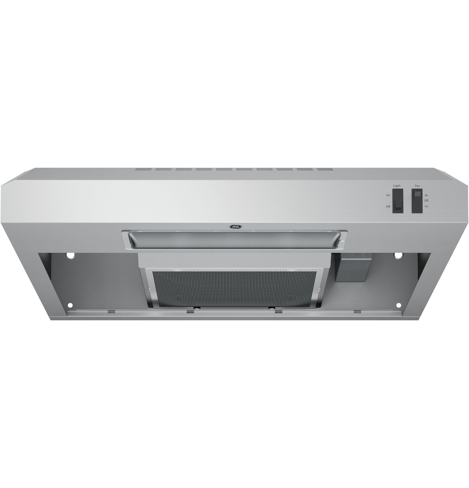 Cooktop Lighting Incandescent Fan Speed Control 2-Speed Ducting Vertical or Horizontal; 7" Round Light Controls On/Off Filter Cleaning Dishwasher Safe Fan Controls Rocker CFM/ Sones Rating 130/5.0 (Low Speed), 200/6.5 (High Speed) Exhaust Options Recirculating, Vented to Outside Product Type Control Type Rocker Switch Control Location Front Charcoal Filter JXCF53 - Included Removable Grease Filter(s) Yes APPEARANCE