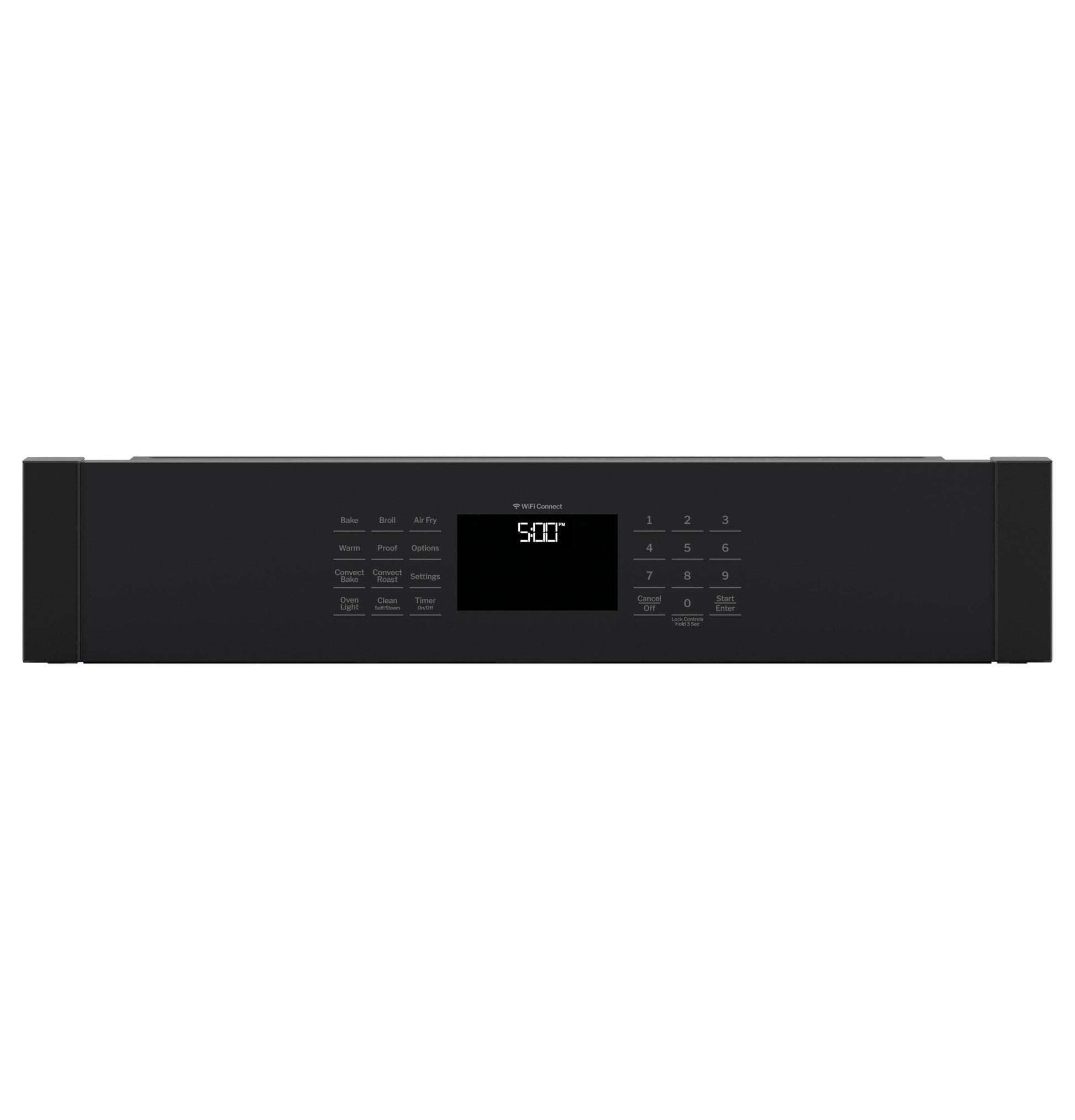 WiFi Connect Built-In Oven Cooking Modes Convection Bake Multi-Rack (Upper), Convection Roast (Upper), No Preheat Air Fry (Upper), Thermal Bake, Thermal Broil Hi/Lo Fuel Type Electric Product Type Double Oven Oven Interior 2 Halogen Interior Oven Lights (Both Ovens), Black Gloss Finish, Hidden Bake Cooking Technology Convection Upper; Traditional Lower Oven Features 10-Pass Bake Element, 8-Pass Broil Element, Closed Door Broiling Cleaning Time Variable with Delay Clean Option Configuration Double Oven Oven Rack Positions (Single or Upper/Lower) 6 / 6 Oven Control Features 12-Hour Shut-Off Capability, Audible Preheat Signal, Auto Recipe Conversion, Control Lock Capability, Cook Time, C° or F° Programmable, Delay Time, Electronic Clock & Kitchen Timer, Mis-Wire Detection, Proof Mode, Remote Enabled, Sabbath Mode, Temperature Probe (Upper), Warm Mode Sabbath Mode Yes Oven Rack Features 4 Enamel Flat Oven Racks, Embossed Rack Positions (Both Ovens) Self-Clean Oven Door Lock Automatic Cooking System Traditional (Lower), True European Convection (Upper) Control Type Backlit, Electronic, Glass Touch Controls, White LCD Display Connected Capabilities Amazon Alexa, Fresco, IFTTT, Innit, Sonos, The Google Assistant OU Certified No Oven Cleaning Type Self-Clean with Steam Clean Option APPEARANCE