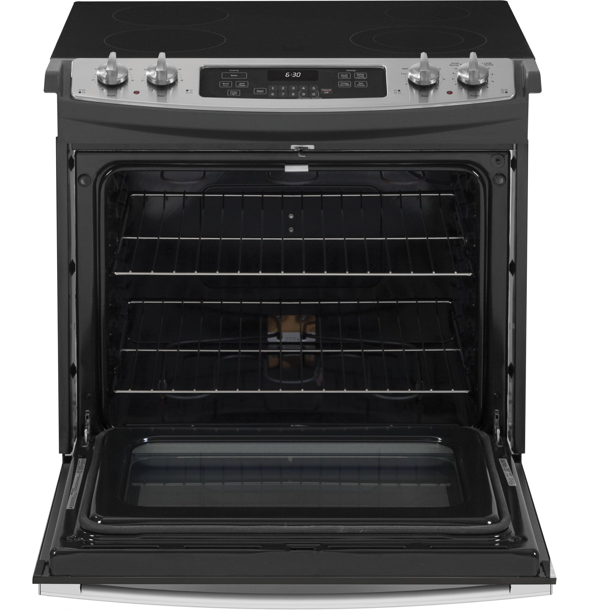 Oven Control Features Audible Preheat Signal, Auto Oven Shut-Off with Override, Certified Sabbath Mode, Control Lock Capability, C° or F° Programmable, Delay Bake Option With Cook & Hold, Electronic Clock & Kitchen Timer Oven Rack Features 2 Oven Racks, 7 Rack Positions Element - Left Front 8" 2000W Oven Cleaning Type Self-Clean Product Type Drop-In Heating Element "ON" Indicator Light 2 Cooktop Type Radiant Smoothtop Fuel Type Electric Element - Right Front 9"/6" 3000W Power Boil Interior Oven Light 1 Incandescent Control Location Front Control Type Digital Temperature Display, Electronic, Touchpads Hot Surface Indicator Lights 4 Sabbath Mode Yes Element - Left Rear 8" 2000W Cooking Technology Traditional Oven Features 6-Pass Bake Element, 6-Pass Broil Element Melt Setting Yes OU Certified No Cooktop Burner Type Radiant, Smoothtop Element - Right Rear 6" 1200W Cooktop Surface Gray Patterned Ceramic Glass, Overhanging Cooktop Self-Clean Oven Door Lock Automatic APPEARANCE