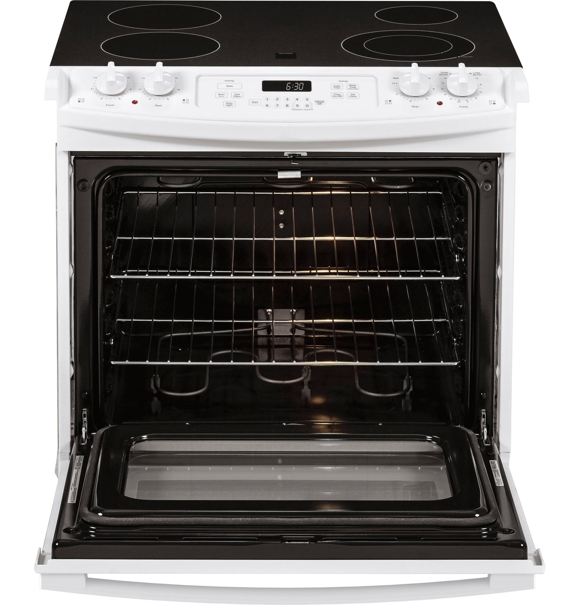 Oven Control Features Audible Preheat Signal, Auto Oven Shut-Off with Override, Certified Sabbath Mode, Control Lock Capability, C° or F° Programmable, Delay Bake Option With Cook & Hold, Electronic Clock & Kitchen Timer Oven Rack Features 2 Oven Racks, 7 Rack Positions Element - Left Front 8" 2000W Oven Cleaning Type Self-Clean Product Type Drop-In Heating Element "ON" Indicator Light 2 Cooktop Type Radiant Smoothtop Fuel Type Electric Element - Right Front 9"/6" 3000W Power Boil Interior Oven Light 1 Incandescent Control Location Front Control Type Digital Temperature Display, Electronic, Touchpads Hot Surface Indicator Lights 4 Sabbath Mode Yes Element - Left Rear 8" 2000W Cooking Technology Traditional Oven Features 6-Pass Bake Element, 6-Pass Broil Element Melt Setting Yes OU Certified No Cooktop Burner Type Radiant, Smoothtop Element - Right Rear 6" 1200W Cooktop Surface Overhanging Cooktop, White Patterned Ceramic Glass Self-Clean Oven Door Lock Automatic APPEARANCE