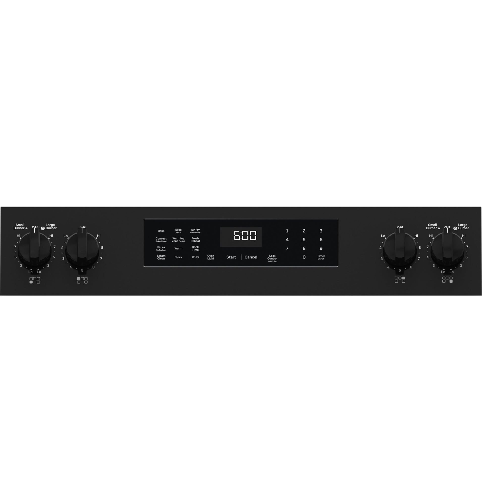 Cooking System Convection Oven Interior Black Enamel Element - Center 6" 80W Warming Zone Oven Control Features Bluetooth, Chef Connect (App), Convection Bake, Convection Roast, Cook Time, Delay Start (App), Hi / Low Broil, Timer, Warm Mode, WiFi Oven Rack Features 2 Nickel Racks Element - Left Front 9"/6" 3100W Power Boil Oven Cleaning Type Steam Clean with Easy Wash Oven Tray Product Type Free-Standing Single Oven Heating Element "ON" Indicator Light Yes Cooktop Type Radiant Smoothtop Fuel Type Electric Element - Right Front 12"/9" 3000W Power Boil Interior Oven Light 1 Light WiFi Connect Built-In Control Location Backsplash Express Preheat Yes Control Type Cap Touch Controls Drawer Type Storage Hot Surface Indicator Lights Yes Sabbath Mode Yes Element - Left Rear 6" 1200W Cooking Technology Convection Configuration Range with Storage Drawer Oven Features 4-Pass Bake Element, 4-Pass Broil Element, Hidden Bake OU Certified OU/CRC Enhanced Shabbos Mode, when used with Shabbos Keeper, sold separately Oven Cooking Modes Bake, Convection Bake, Convection Roast, Fresh Reheat, No Preheat Air Fry, No Preheat Pizza Cooktop Burner Type Radiant, Smoothtop Element - Right Rear 6" 1200W Cooktop Surface Black Ceramic Glass, One-Piece Upswept, Porcelain-Enamel Perimeter Oven Rack Positions (Single or Upper/Lower) 6 APPEARANCE