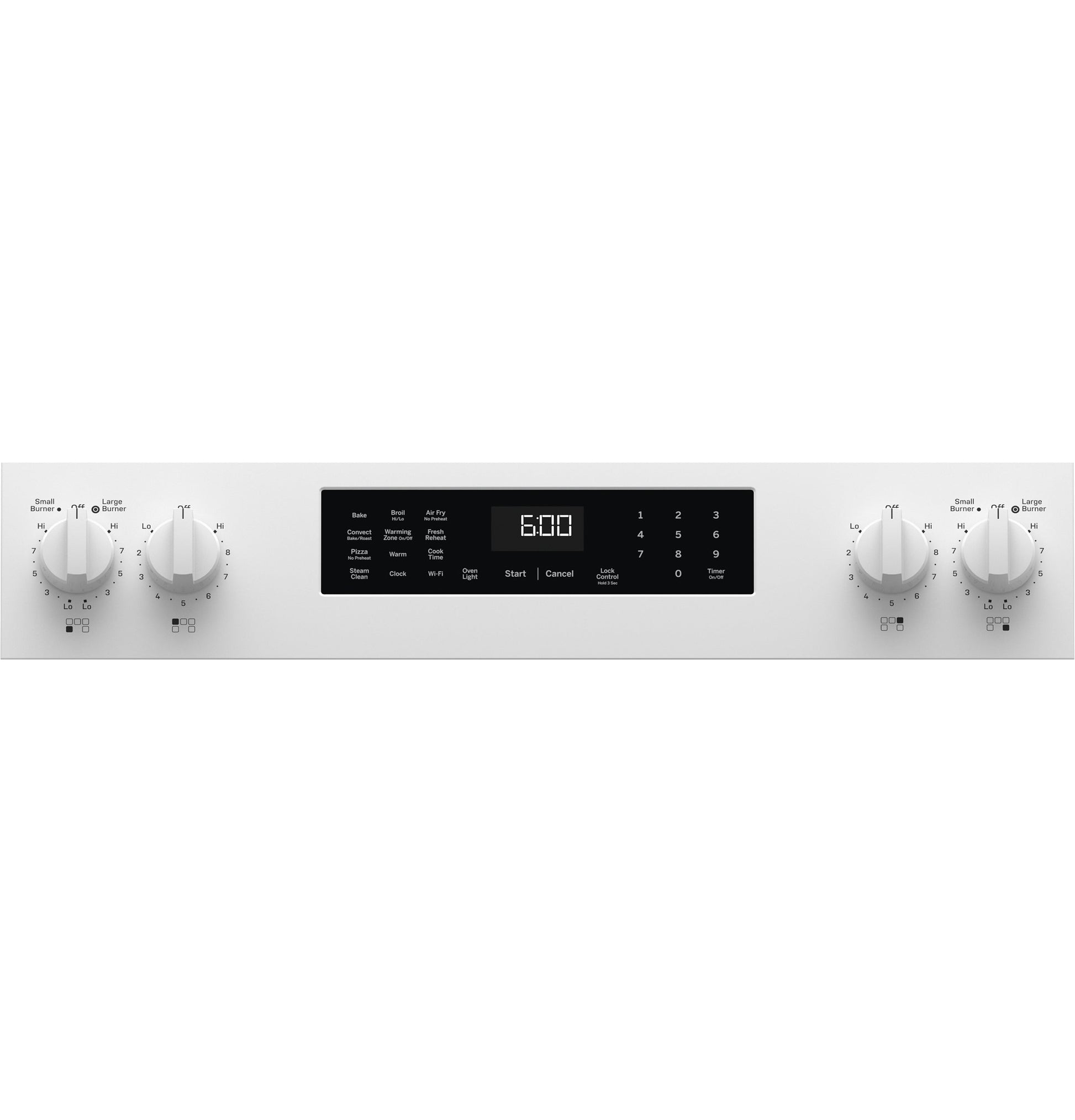 Cooking System Convection Oven Interior Black Enamel Element - Center 6" 80W Warming Zone Oven Control Features Bluetooth, Chef Connect (App), Convection Bake, Convection Roast, Cook Time, Delay Start (App), Hi / Low Broil, Timer, Warm Mode, WiFi Oven Rack Features 2 Nickel Racks Element - Left Front 9"/6" 3100W Power Boil Oven Cleaning Type Steam Clean with Easy Wash Oven Tray Product Type Free-Standing Single Oven Heating Element "ON" Indicator Light Yes Cooktop Type Radiant Smoothtop Fuel Type Electric Element - Right Front 12"/9" 3000W Power Boil Interior Oven Light 1 Light WiFi Connect Built-In Control Location Backsplash Express Preheat Yes Control Type Cap Touch Controls Drawer Type Storage Hot Surface Indicator Lights Yes Sabbath Mode Yes Element - Left Rear 6" 1200W Cooking Technology Convection Configuration Range with Storage Drawer Oven Features 4-Pass Bake Element, 4-Pass Broil Element, Hidden Bake OU Certified OU/CRC Enhanced Shabbos Mode, when used with Shabbos Keeper, sold separately Oven Cooking Modes Bake, Convection Bake, Convection Roast, Fresh Reheat, No Preheat Air Fry, No Preheat Pizza Cooktop Burner Type Radiant, Smoothtop Element - Right Rear 6" 1200W Cooktop Surface Black Ceramic Glass, One-Piece Upswept, Porcelain-Enamel Perimeter Oven Rack Positions (Single or Upper/Lower) 6 APPEARANCE