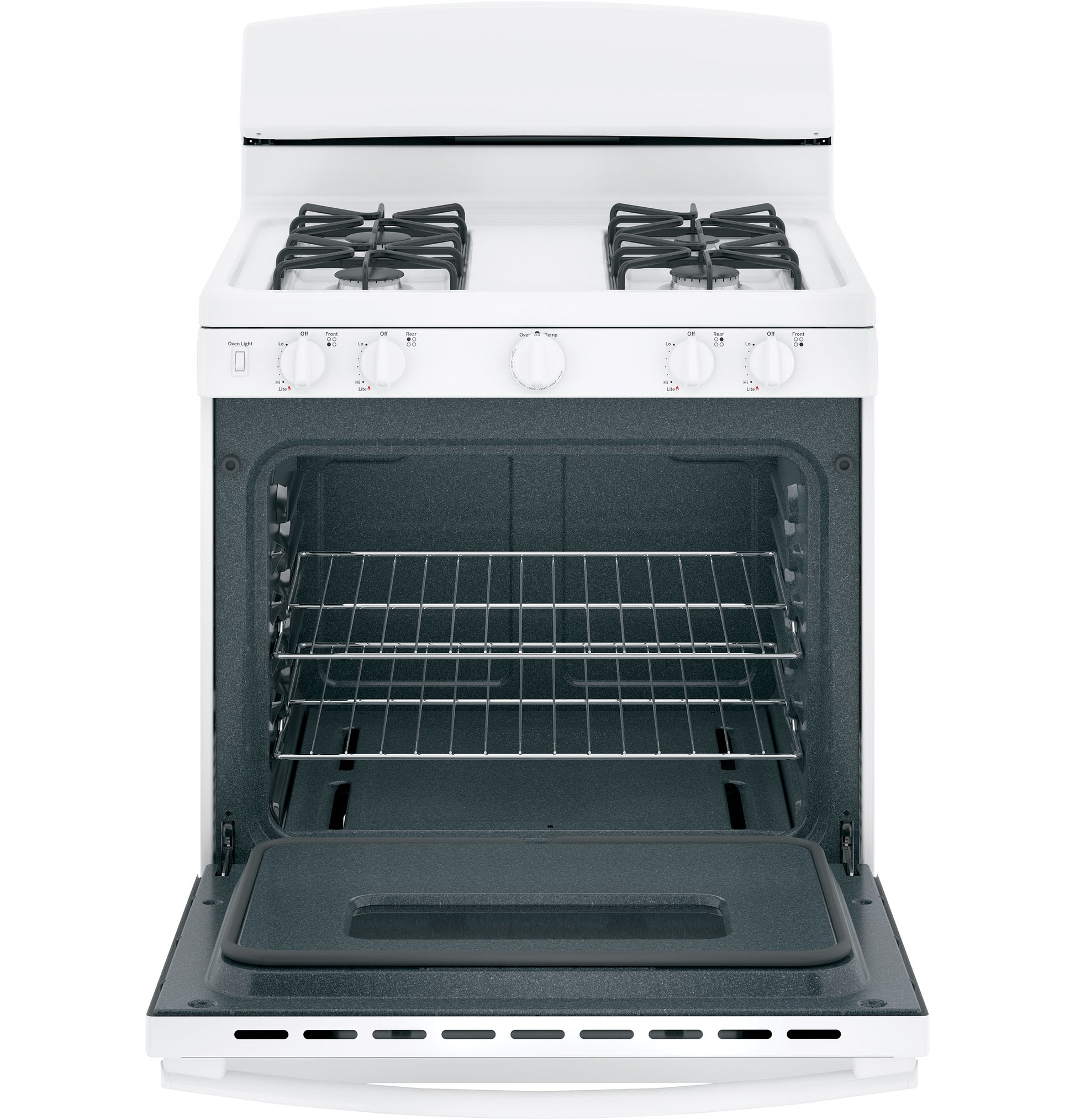 Ignition System Electronic Burner - Right Rear 5,000 BTU Precise Simmer Oven Interior 1 Incandescent Light Oven Rack Features 2 Flat Nickel Racks, 6 Rack Positions Burner - Left Rear 9,500 BTU Oven Cleaning Type Standard Clean Slide - Out Broiler Drawer Drop Down Door Product Type Free-Standing Single Oven Cooktop Type Standard Grates Cooktop Burner Grate Material Heavy Steel Fuel Type Natural Gas (factory set) Control Location Front Burner - Left Front 9,500 BTU Drawer Type Broiler Sabbath Mode Yes Cooking Technology Traditional Configuration Range with Broiler Drawer OU Certified No Cooktop Burner Type Sealed Valves (Degree of Turn) 140 Burner - Right Front 13,000 BTU Cooktop Surface Porcelain-Enamel APPEARANCE