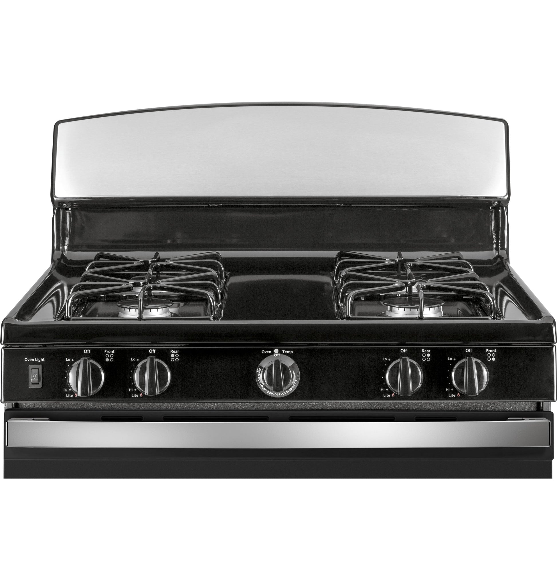 Ignition System Electronic Burner - Right Rear 5,000 BTU Oven Rack Features 2 Flat Nickel Racks, 6 Rack Positions Burner - Left Rear 9,500 BTU Oven Cleaning Type Standard Clean Product Type Free-Standing Single Oven Cooktop Type Standard Grates Cooktop Burner Grate Material Heavy Steel Fuel Type Natural Gas (factory set) Interior Oven Light 1 Incandescent Control Location Front Control Type Knob Burner - Left Front 9,500 BTU Drawer Type Broiler Sabbath Mode Yes Cooking Technology Traditional Configuration Range with Broiler Drawer OU Certified No Cooktop Burner Type Sealed Burner - Right Front 13,000 BTU Cooktop Surface Black, One-Piece Upswept, Porcelain-Enamel APPEARANCE
