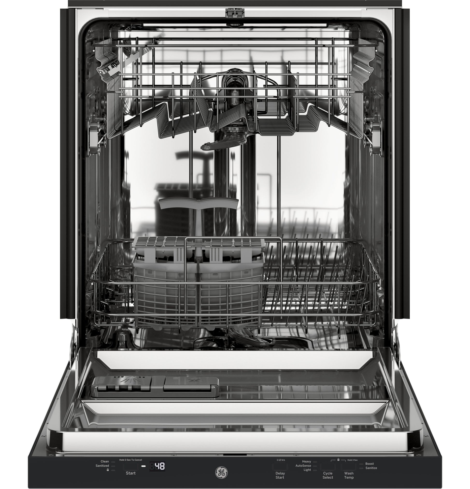 Wash System 3-Level, Standard Sensor Clean Sensor Lower Rack Nylon Leveling System Leveling Legs Number of Place Settings Up to 12 Dishwasher Options Child Lock, Delay Start 1-12 Hr., Sani (Certified to NSF Standard 184), Start/Reset, TempBoost Latch Center Pull Number of Options 5 Style Built-In Top Control Water Filtration System 3-Stage Manual Clean Filtration Rack Features 1 Plastic Utility Shelf - Upper, 2 Piece Silverware Basket with Cell Covers, Ball-Tipped Tines, Stem Safe Dishwasher Cycles AutoSense, Heavy Wash, Light Wash Dispenser Rinse Aid with Indicator and Adjustment WiFi Connect Optional (Requires part no. PBX23W00Y0) Control Type 4 Pushbuttons, Fully Integrated Electronic, Top Controls Racking System Gray Dishwasher Drying Features Condensate Dry Wash Arms 2 with Upper Nozzle Wash System Features Automatic HotStart, Automatic Temperature Control, Dual Pump, Flood Control System, Piranha⢠Hard Food Disposer Exterior Style Built-In Connected Capabilities Amazon Alexa, IFTTT, Sonos, The Google Assistant Upper Rack Adjustable, Nylon Dishwasher Control Features 3 Digit Countdown Display with 1 "Clean" light / 1 "Sanitized" light Cycle Progress Indicators, Audible End-of-Cycle Signal, Cycle Countdown, Last Cycle Memory, Start/Reset Pad Number of Cycles 3 Tub and Door Liner Stainless Steel APPEARANCE