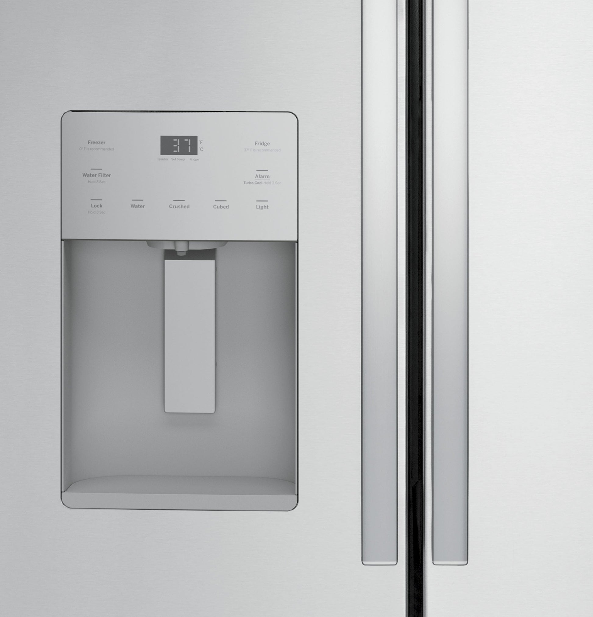 Temperature Management Features Multiflow Air System with Electronic Sensors, Turbo Cool setting Control Type Digital Temperature Display, External Electronic Temperature Controls Dispenser Features LED Dispenser Light, Water Filter Indicator Light Icemaker Factory-Installed WiFi Connect Optional (Requires part no. PBX23W00Y0) Performance Features Easily Removable Door Gaskets Sabbath Mode Optional Filter Location Upper right corner Door Alarm Yes Freezer Storage Baskets 1 Full-Width, Full-Extension Plastic, 3 Total Defrost Type Frost Guard Leveling System 2 Point Front Adjustable Fresh Food Cabinet Shelves 1 Quick Space Shelf, 4 Split Adjustable, 5 Total, Glass Fresh Food Door Bins 3 Adjustable with Gallon Storage, 4 Fixed, 7 Clear Look Freezer Features Interior Lighting - LED Exterior Style Counter-Depth, Free-Standing Configuration French Door Refrigerant Type R600a Door Liner HIPS Dispenser Cubes, Crushed Ice and Chilled Water, External Water Fresh Food Features Fresh Food Cabinet Drawers 1 Full-Width, Adjustable Temperature Drawer, 2 Humidity Controlled Drawers, Multi-Level Drawers Water Filtration GE Water Filtration (XWFE Filter), Water Filter Indicator Light Product Type Bottom Freezer Refrigerator, French-Door Refrigerator OU Certified OU/CRC Enhanced Shabbos Mode, when used with Shabbos Keeper, sold separately APPEARANCE