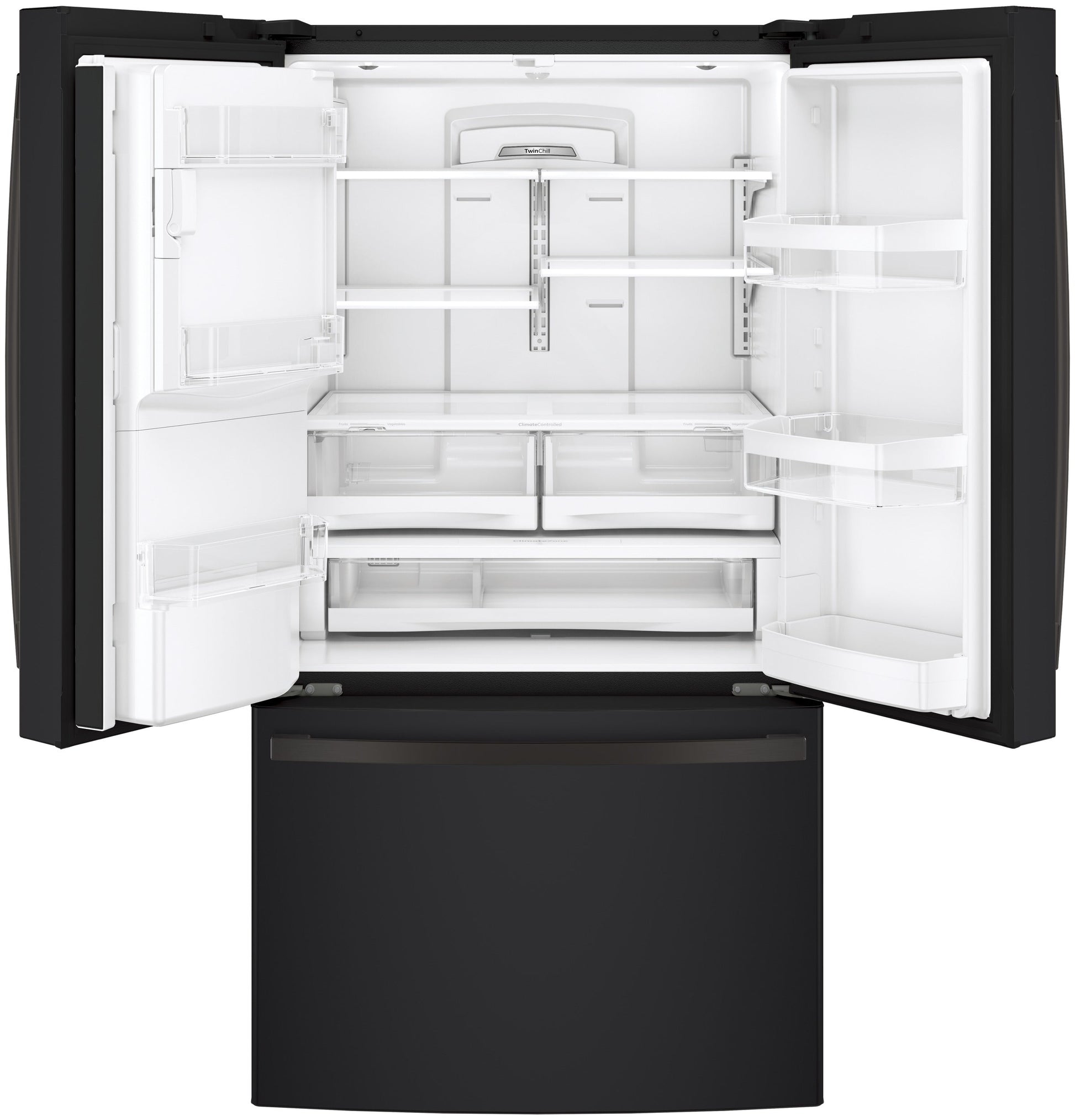 Temperature Management Features Turbo Cool setting Dispenser Features Door Alarm, LED Dispenser Light, Water Filter Indicator Light Control Type External Electronic Digital Temperature Display Icemaker Optional 2nd Icemaker (IM5D) in Freezer, Space Saving Ice WiFi Connect Optional (Requires part no. PBX23W00Y0) Performance Features Easily Removable Door Gaskets Sabbath Mode Optional Filter Location Left wall Freezer Storage Baskets 2 Full-Width Temperature Management System TwinChill⢠Evaporators Defrost Type Frost Guard Leveling System 2 Front Leveling Legs Fresh Food Cabinet Shelves 4 Adjustable, 1 Full-Width, 4 Spill Proof, 5 Total - Glass Fresh Food Door Bins 2 Adjustable, 3 with Gallon Storage, 6 Total Freezer Features Interior Lighting - LED (2), Turbo Freeze Exterior Style Free-Standing Configuration French Door Refrigerant Type R600a Dispenser Cubes, Crushed Ice and Water, Large Color-Matched Fresh Food Features Fresh Food Cabinet Drawers 1 Full-Width with LED Lighting, 2 Adjustable Humidity, 3 Total Water Filtration Advanced Filtration System (RPWFE), Removes Pharmaceuticals Product Type Bottom Freezer Refrigerator, French-Door Refrigerator OU Certified OU/CRC Enhanced Shabbos Mode, when used with Shabbos Keeper, sold separately APPEARANCE