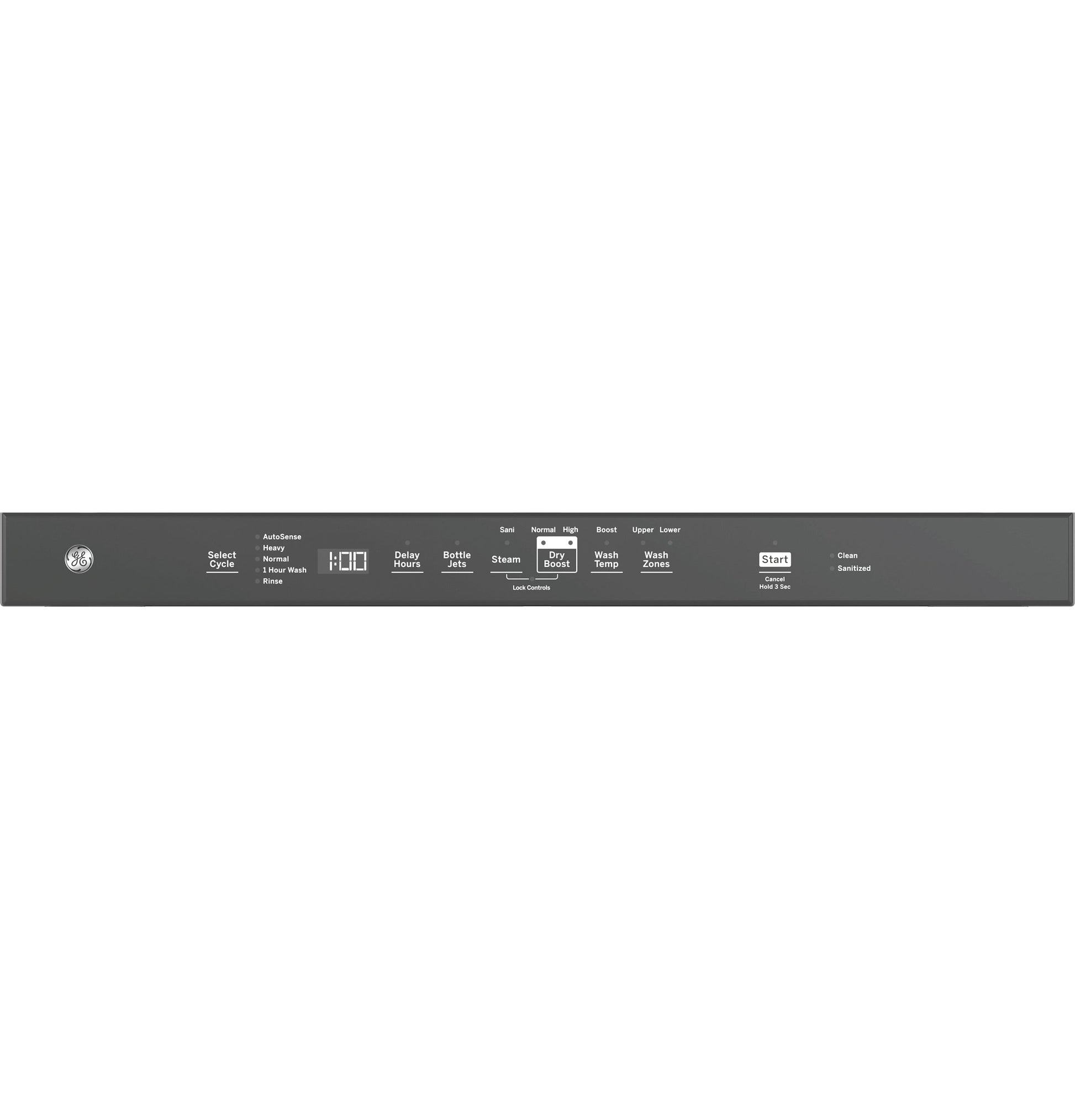 Wash System 3-Level, 600 Series Sensor Clean Sensor Lower Rack Ball-Tip Tines Tub Type Tall Tub Leveling System 4 Leveling Legs OU Certified No Additional Protection Active Flood Protect Number of Place Settings 16 Dishwasher Options Bottle Jets, Child Lock, Delay Start 1-12 Hr., Dry Boost⢠(High), Dry Boost⢠(Normal), Sabbath Mode, Start/Cancel, Steam + Sani (Certified to NSF Standard 184), Wash TempBoost, Wash Zone Lower Only, Wash Zone Upper Only Latch Pull with Handle Number of Options 11 Style Built-In Top Control Water Filtration System 100% Filtration with Piranha Hard Food Disposer and Removable Filter Rack Features 1 Piece Silverware Basket with 3 Cell Covers, Adjustable Upper Rack, Ball-Tipped Tines Racking Material Nylon Dishwasher Cycles 1 Hour Wash, AutoSense, Heavy Wash, Normal Wash, Rinse Rack Color Silver Dispenser Rinse Aid with Indicator and Adjustment WiFi Connect Optional (Requires part no. PBX23W00Y0) Control Type 8 Touchpads, Cap Touch Controls, Top Controls Racking System Full 3rd rack + caddy Dishwasher Drying Features Dry Boostâ¢, Normal, High, Off Wash Arms 3 Wash Levels, Bottle Jets, Bottle Wash Jets, Deep Clean Silverware Jets, Lower, Middle, Upper Wash System Features Automatic HotStart, Automatic Temperature Control, Bottle Jets (4), Drain Pump, Piranha⢠Hard Food Disposer with removable filter, Variable Speed Dual Pumps and Motors Top Rack/3rd Rack 3rd Rack + Caddy Exterior Style Traditional Upper Rack Ball-Tip Tines, Premium Height Adjustable, Smooth Glide Upper Rack Dishwasher Control Features 1 "Clean" Light, 1 "Sanitized" Light Cycle Progress Indicators, 3 Digit Display Cycle Countdown with Bi-Color LED Status Light on door, Audible End-of-Cycle Signal, Control Lock with 1 Light, Last Cycle Memory Number of Cycles 5 Tub and Door Liner Stainless Steel Sabbath Mode Yes Showroom Power Mode Yes APPEARANCE