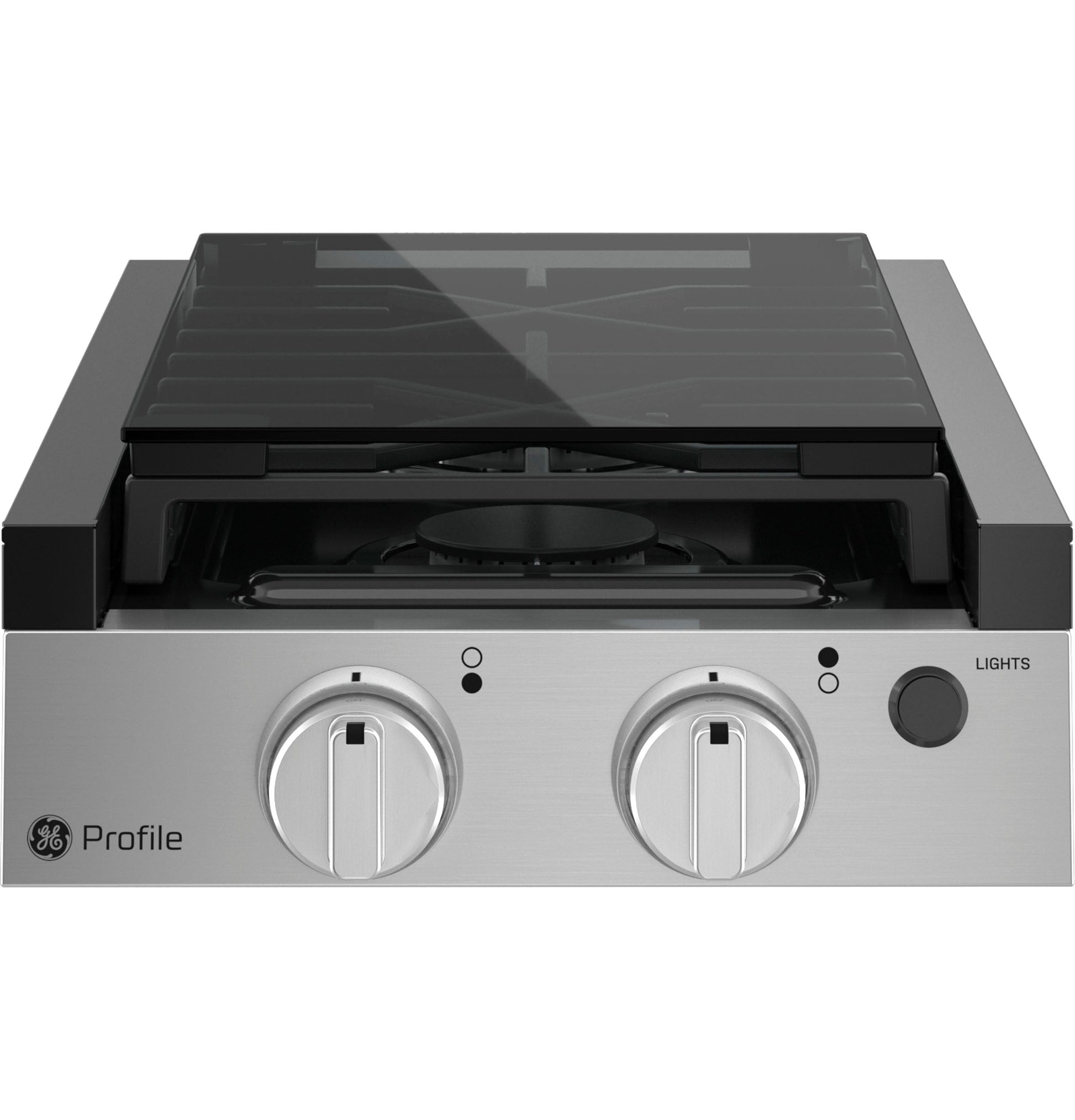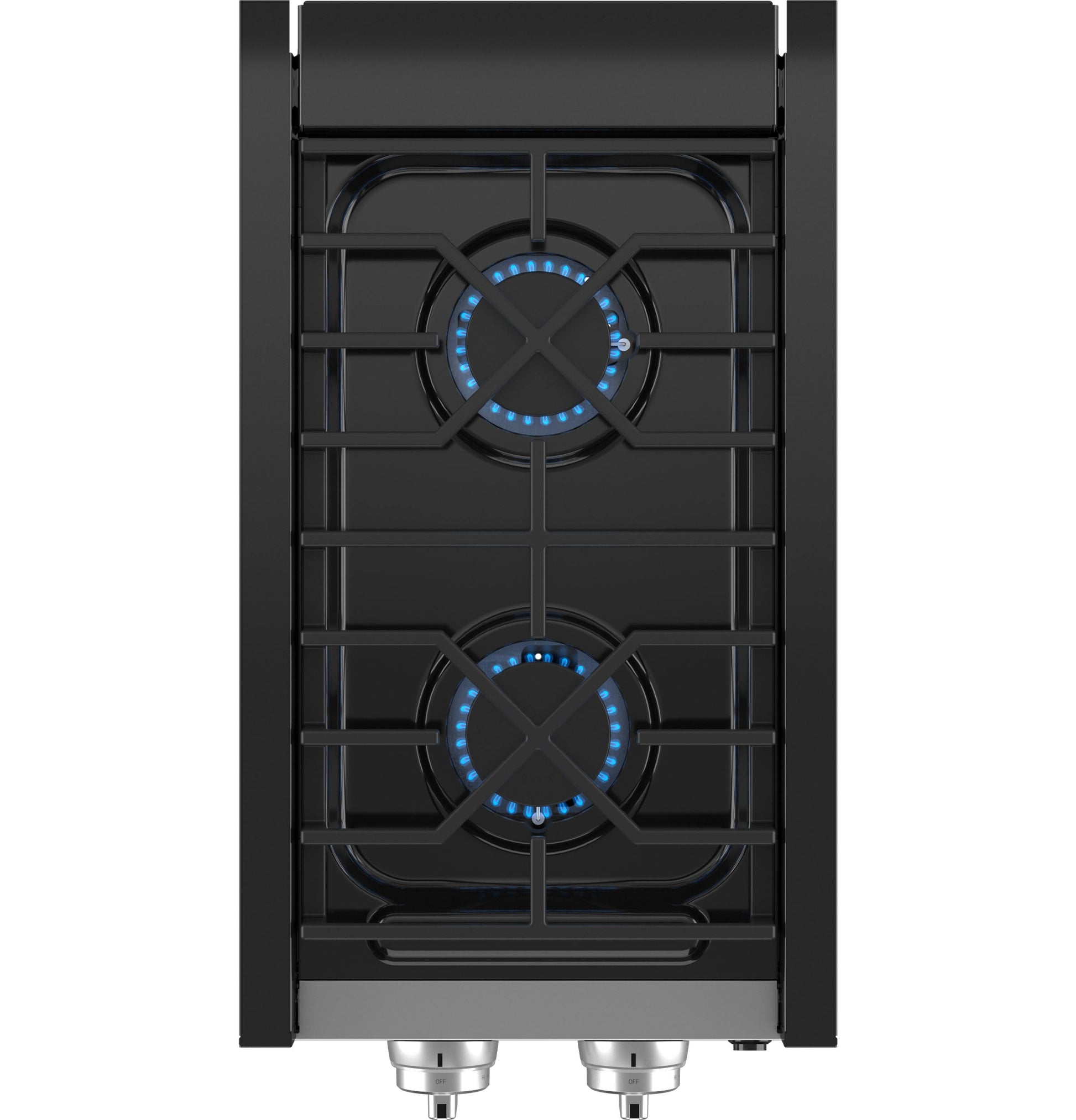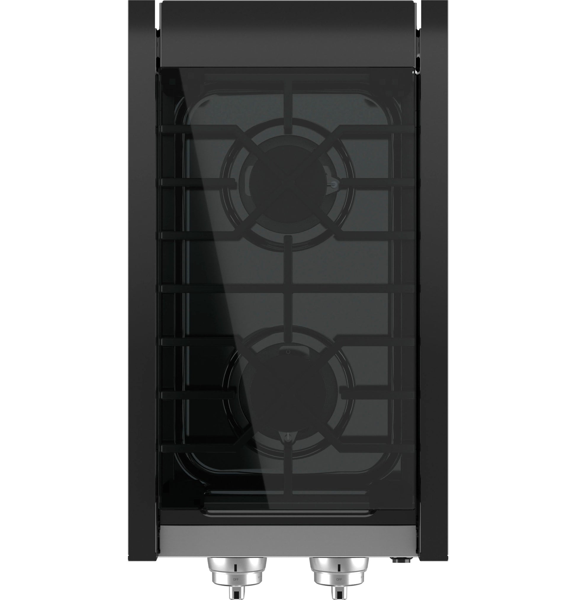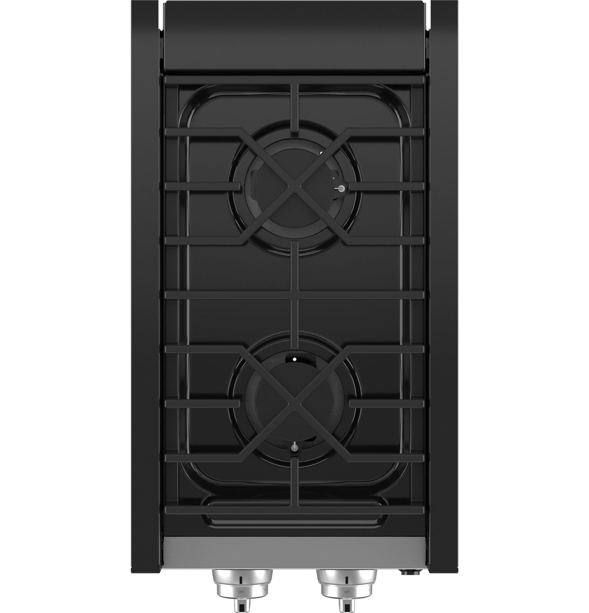 Cooktop Burner Type Sealed RV Ready Yes Fuel Type Liquid Propane Gas (factory set) Control Location Front Ignition System Electronic Burner - Center 6,500 BTU Front; 6,500 BTU Rear Cooktop Surface Control Type Backlit, Knob Cooktop Burner Grate Material Continuous Cast Iron Cooktop Burner Grate Features Continuous Grates, Edge-to-Edge Grates, Fixed to prevent vibration, but removable, Matte Black Product Type Cooktop APPEARANCE