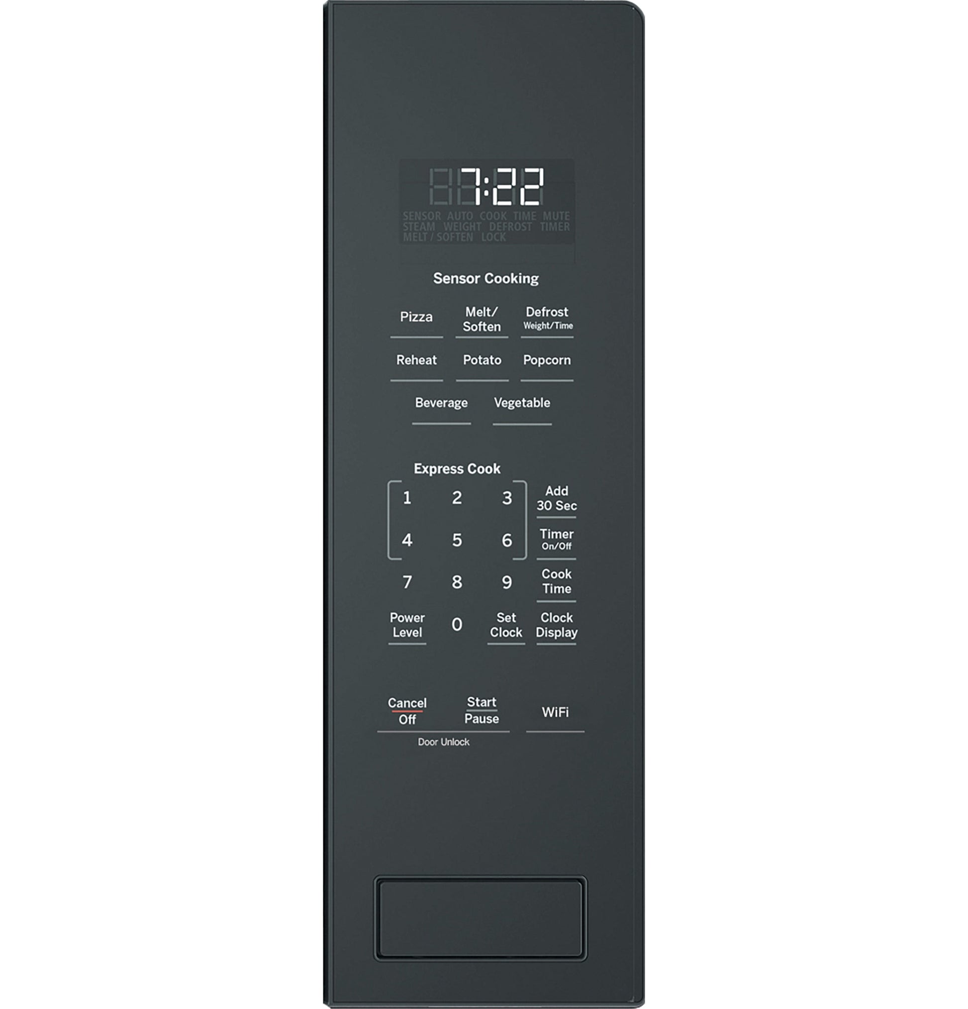 Display Type LED Interior Lighting Incandescent Power Cord Length 41" Electronic Digital Display with Clock Yes (LED) Microwave Sensor Cooking Controls Beverage, Defrost: Weight/Time, Healthy Menu, Melt/Soften, Popcorn, Potato, Reheat, Vegetable Control Features Add 30 Seconds, Cancel/Off, Child Lock-Out, Clock Saver, Cook Time, Help, Power Level, Set Clock, Sound, Start/Pause, Timer On/Off Display Screen Size (Diagonal Length) 2.45 Timer (On/Off) Yes Product Type Built-In Microwave Microwave Watts (IEC-705) 1100 Power Levels 10 Control Type Electronic Touch Microwave Oven Interior Epoxy Coated Sound Volume Control On/Off Turntable Glass Recessed Instant On Controls Yes Cooking Technology Microwave Turntable Size 16.5 APPEARANCE