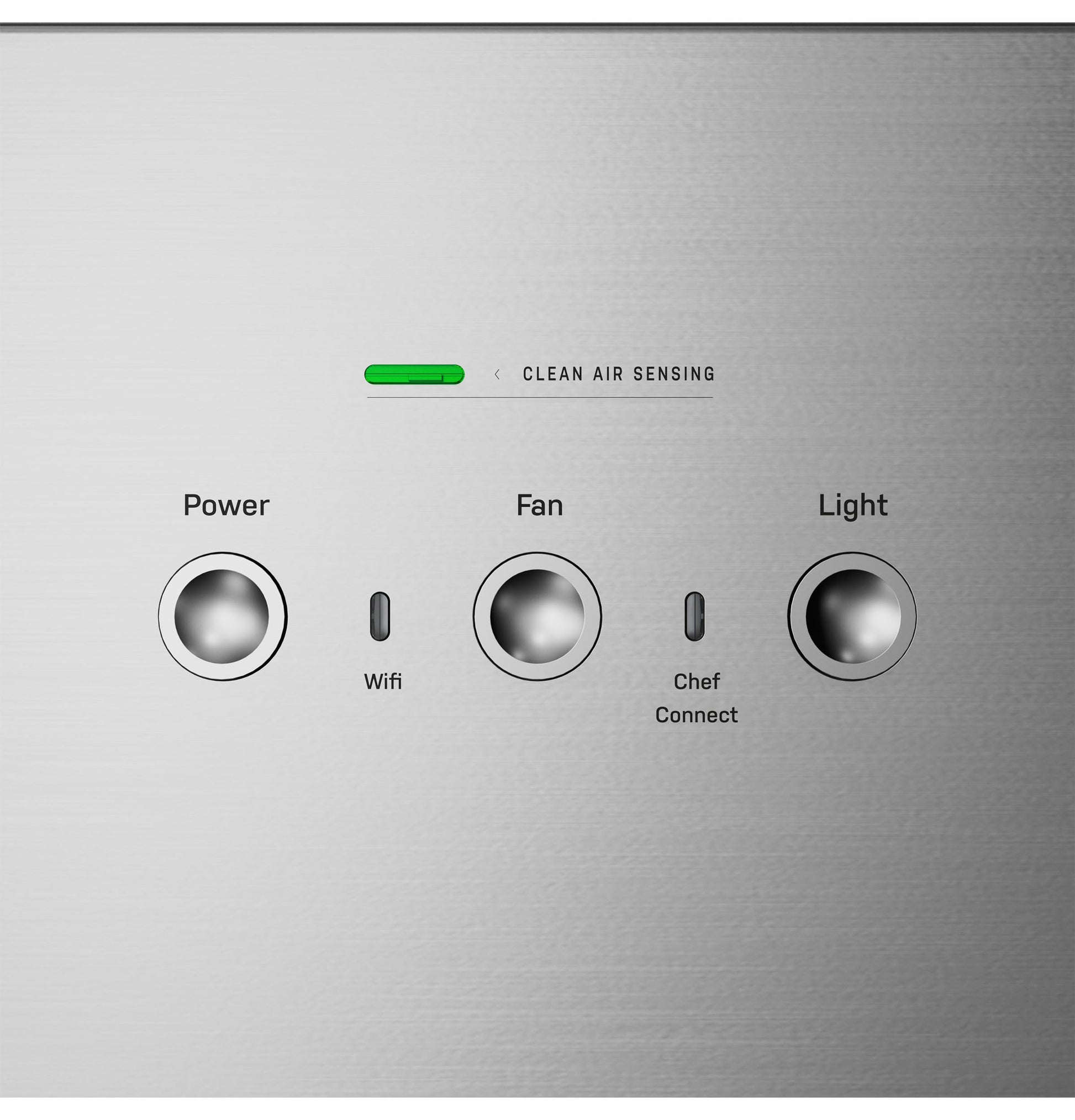 Fan Speed Control 3 Speed + Boost Cooktop Lighting Articulating Puck LED, LED WiFi Connect Built-In Max CFM 450 Required Duct Size 8-in. Round Working Speed CFM/Sones 3.0 Ducting Vertical and Recirculating Light Controls On/Off/Night CFM/ Sones Rating 450/9.0 (Boost Speed) Filter Cleaning Reminders Yes (through app) Automatic Light/Fan Activation Yes (Chef Connect) Time Delay Shut-Off Yes Exhaust Options Vented to Outside or Recirculating 8" Round Duct Yes Product Type Vertical Exhaust Blower Rating (CFM) 610-CFM Variable Speed Fan Yes Control Type Rim Lit Metal Touch Baffle Stainless Steel Filters 2 Lighting Levels 4 Removable Filter Yes Control Location Hidden Controls Recirculating Capable Yes Blower Levels 4 Including Boost APPEARANCE