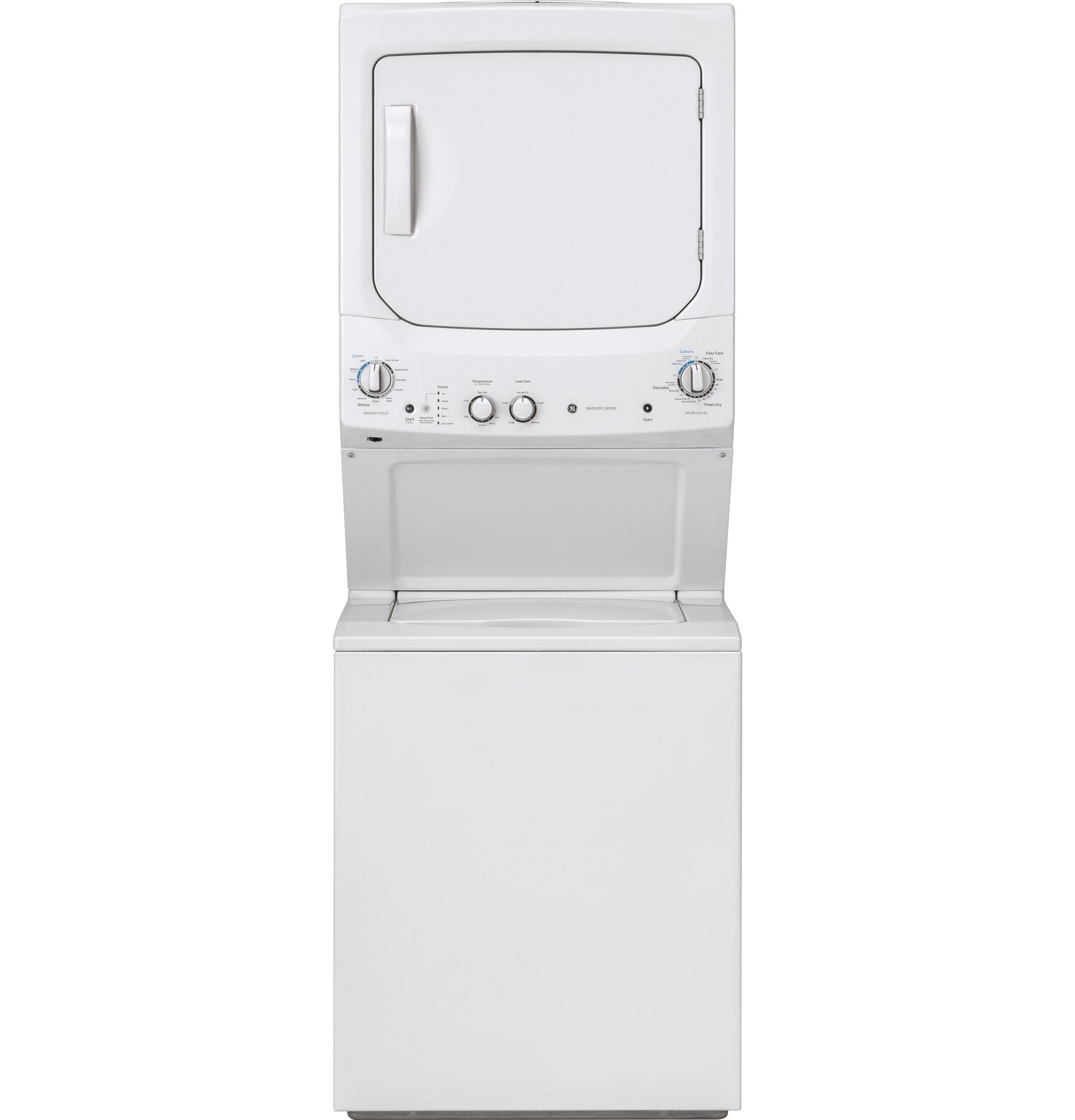 Wash Mechanism Single Action Agitator Case Material Steel Control Type Rotary Electromechanical Drum Type Dura Drum Additional Dryer Features Up-Front Lint Filter Easy Care Cycle Auto, Casuals, Less Dry, More Dry Water Levels Adaptive Fill + 4 levels Washer Options/Settings Deep Rinse (select when using fabric softener) Automatic Dry Control Yes Additional Washer Features Inlet Fill Hoses Included, Lid Latch Washer Control Features LED Indicators Additional Cycles Dewrinkle, Quick Fluff Long Vent Capability Up to 200 feet Washer Cycles Bulky Items, Casuals, Colors/Normal (Heavy, Normal, Light), Delicates, Drain + Spin, Speed Wash, Whites (Heavy, Normal, Light) Fuel Type Electric Cottons Cycle Auto, Less Dry, More Dry, Optimum Dry Product Type Stacked Washer & Dryer Combo Dispenser Bleach, Fabric Softener Wash/Spin Speed Combinations 1 Maximum Spin Speed 800 RPM Number of Cycles 11 Washer/4 Dryer Delicates Cycle Auto, Less Dry, More Dry Exhaust Options 3-Way (Rear; Left; Right) Wash/Rinse Temperatures 6 Timed Dry 90 Minutes Heat Selections 4 APPEARANCE