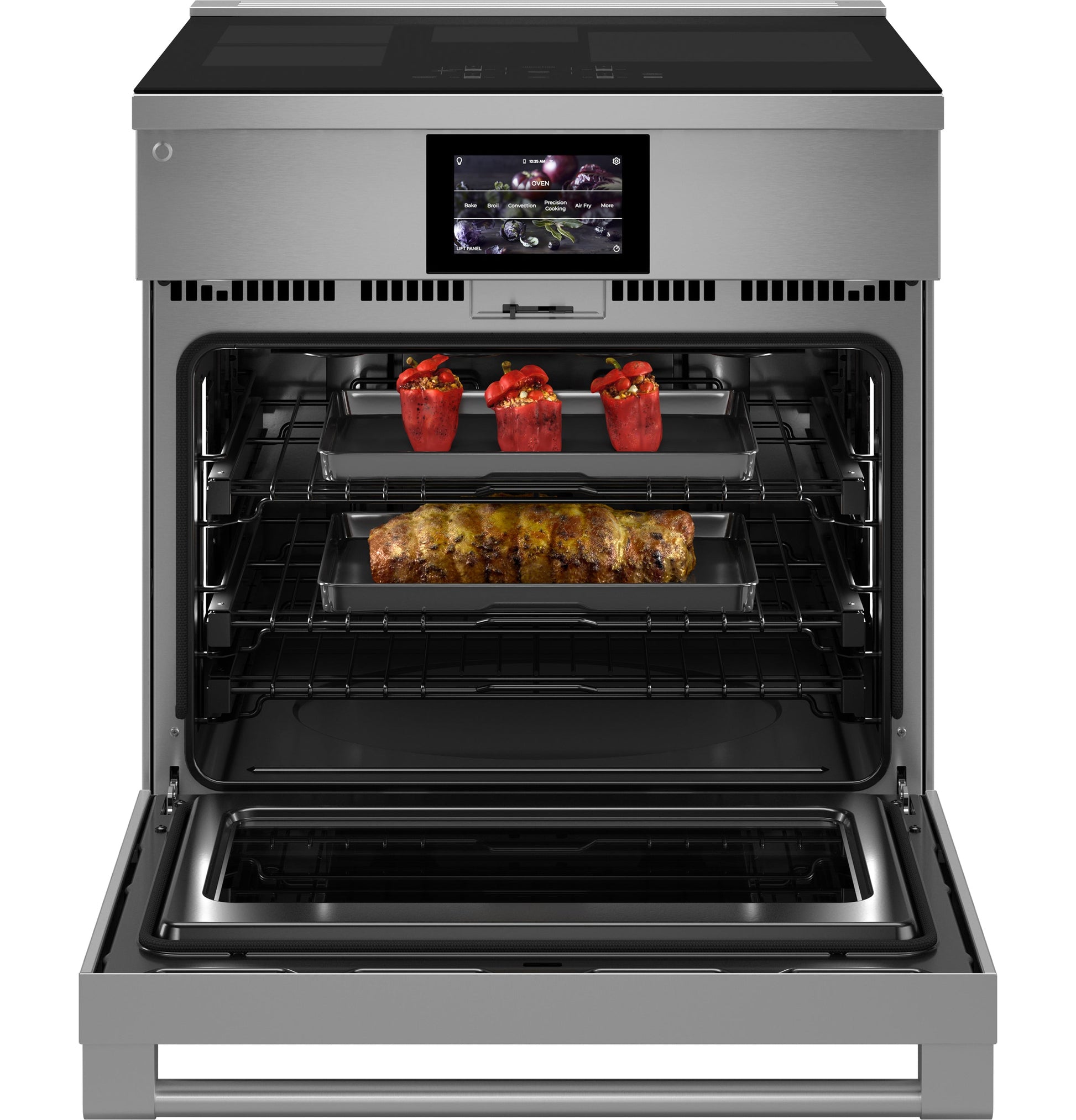 Cooking System Reverse Air Convection, True European Convection Oven Control Features 12-Hour Shut-Off Capability, Audible Preheat Signal, Auto Recipe Conversion, Control Lock Capability, Cook Time, C° or F° Programmable, Delay Clean, Delay Start, Oven Light On/Off, Remote Enabled, Self Clean Cycle Time, Set Clock, Steam Clean Cycle Time, Temperature Probe, Timer Oven Rack Features 3 Self-Clean Oven Racks, Full-Extension Element - Left Front 7" (2500W) Convection Roasting Rack Yes Oven Cleaning Type Self-Clean, Steam Clean Connected Capabilities Innit WiFi Enabled Features Bluetooth Chef Connect, Interfaces with SmartHQ App Heating Element "ON" Indicator Light 4 Cooktop Type Induction Fuel Type Electric Cooktop Control Features All-Off Button,, Control Lock Capability,, Keep Warm, Melt Setting,, Pan Presence Sensor,, Pan Size Sensor,, Sync-Burners, Element - Right Front 11" (3700W) Interior Oven Light 6 Halogen White Light WiFi Connect Built-In Control Type 7" Touch Articulating LCD, Electronic Glide Touch-Control Lighting Customizable LED Bullnose Task Lighting (Dimmable, Color Changing) Hot Surface Indicator Lights 4 Element - Left Rear 7" (2500W) Includes Keep Warm setting Cooking Technology Convection, Induction Oven Features 8-Pass Bake Element, 8-Pass Broil Element, Hidden Bake Melt Setting Yes Oven Cooking Modes Convection Bake Multi-Rack, Convection Broil Hi/Lo, Convection Roast, Hot Air Fry, Precision Cooking Modes, Proof, Scan-to-Cook, Warming Cooktop Burner Type 4 Induction Elements Element - Right Rear 6" (1800W) Includes Melt Setting Cooktop Surface Glass Oven Rack Positions (Single or Upper/Lower) 5 Self-Clean Oven Door Lock Automatic APPEARANCE