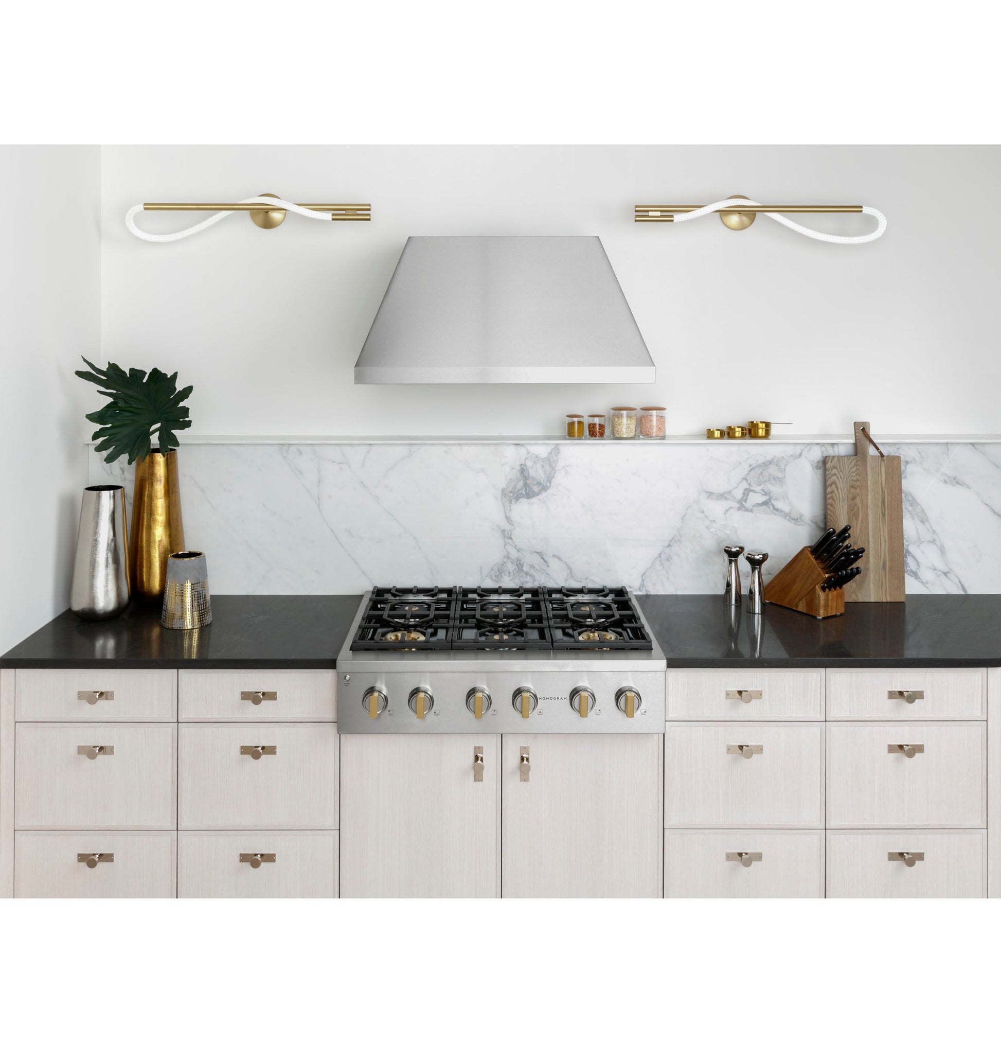 Fan Speed Control Off + 4 (3 Speed + Boost) Cooktop Lighting LED Strip WiFi Connect Built-In Required Duct Size 10-in. Round Damper in Transition Yes CFM/ Sones Rating 410/9.5 (Boost speed) - Vertical venting Exhaust Options Dual Top/Back: 10" Round / Back 8" x 12" Lighting LED Double Wall Construction Yes Control Features Chef Connect, Clean Filter Warning (App), Delay Off Vertical Exhaust Blower Rating (CFM) 610 Welded / Finished Seams Yes Variable Speed Fan Yes Control Type Glass Touch Backlit Baffle Stainless Steel Filters 3 Grease Tray 2 Lighting Levels 4 Utensil Rod Removable Filter Yes Recirculating Capable No APPEARANCE